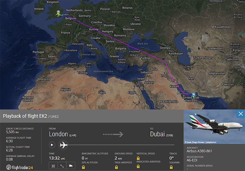 of the Airbus A380 that would be taking us to Dubai as it