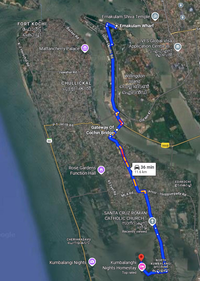 yesterday’s route, driving south from Emakulam Wharf