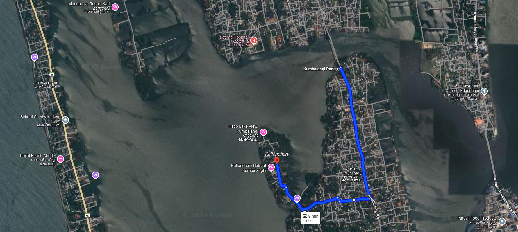 at Kumbalangi Park. (The canoe experience took place at