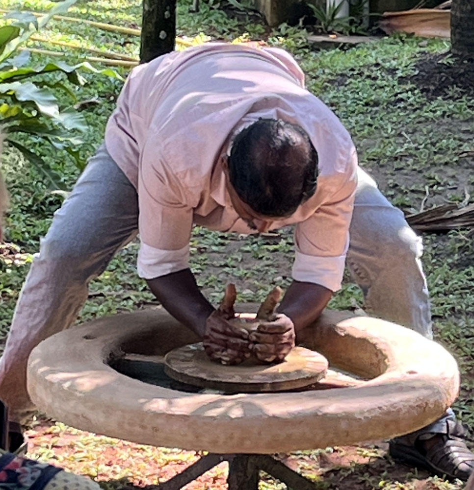 making. The potter kneaded the clay with his hands, placed