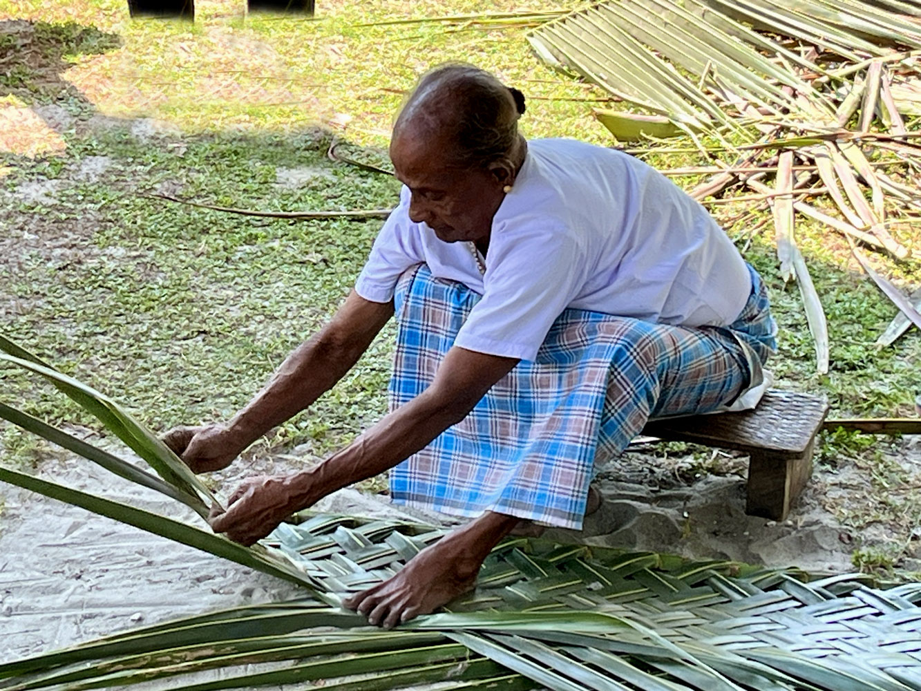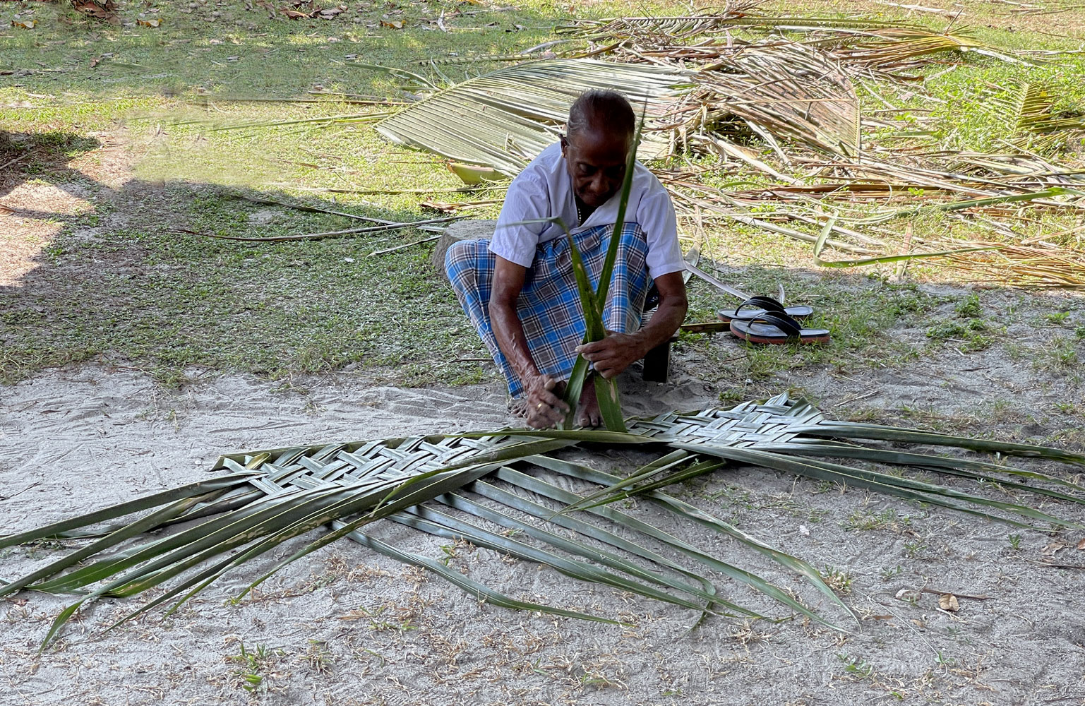 Weaving coconut leaves,