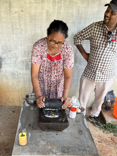 Making a coconut chutney perhaps? |
