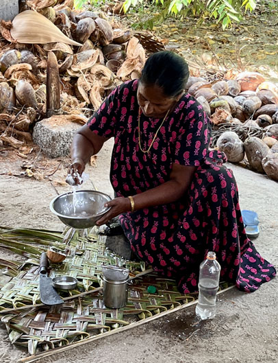 from the coconut shell is a skilled task, as this lady demonstrated. |