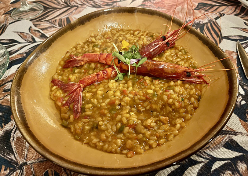 Red prawns with rice.