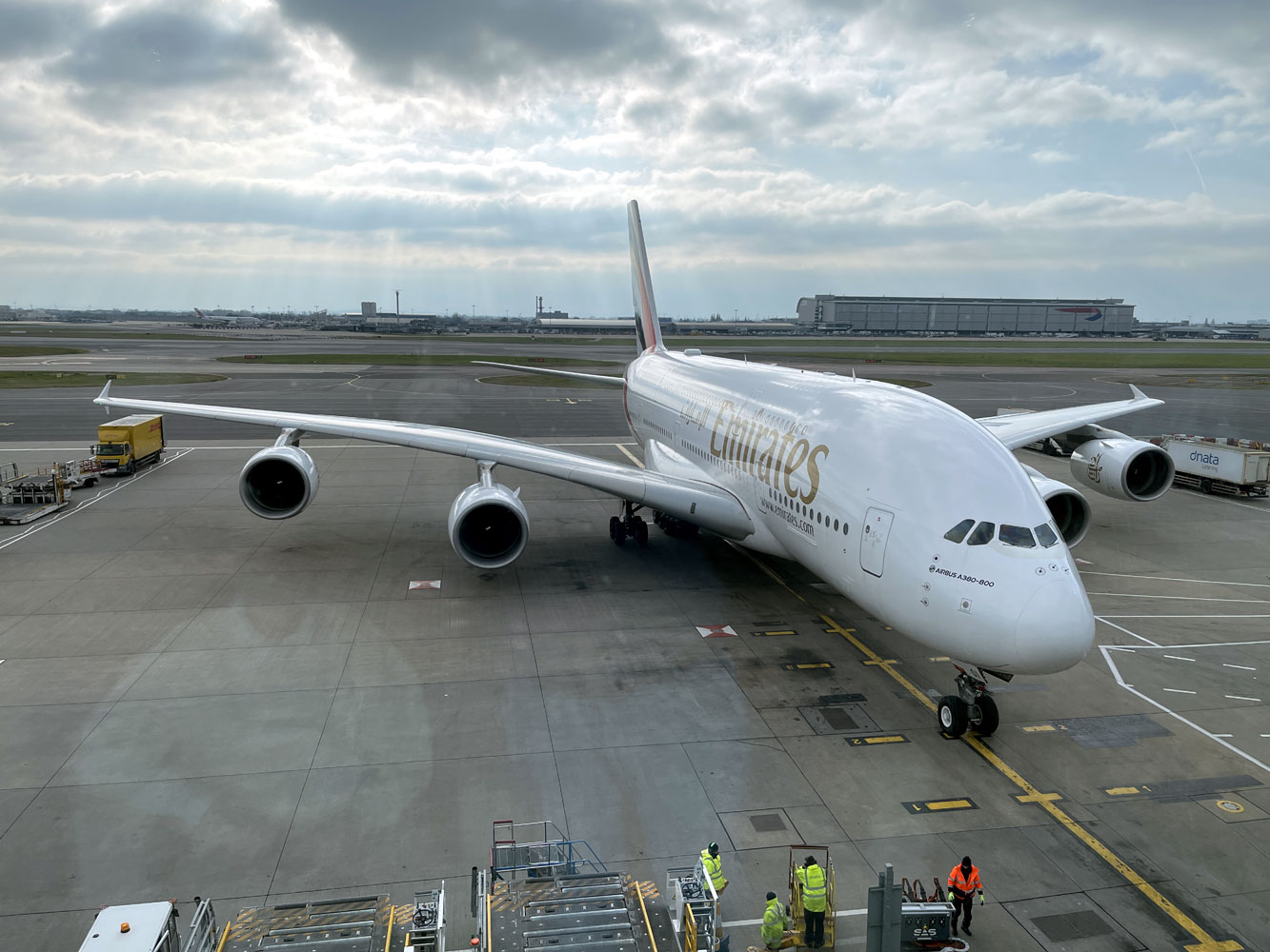 of the Airbus A380 that would be taking us to Dubai as it