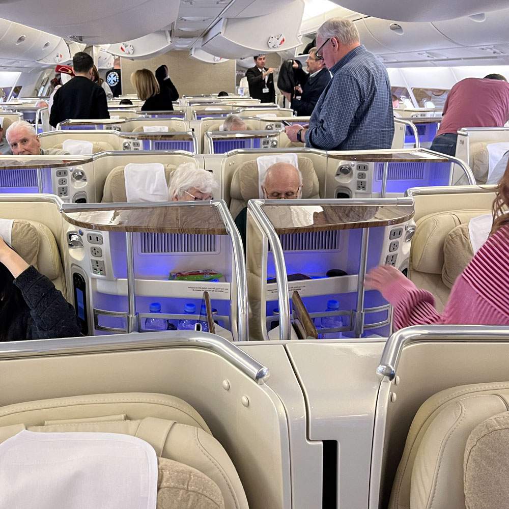 gate, where we boarded the Boeing 777-300 effortlessly—no