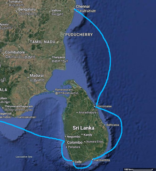 between Chennai and Trincomalee. This map shows the other
