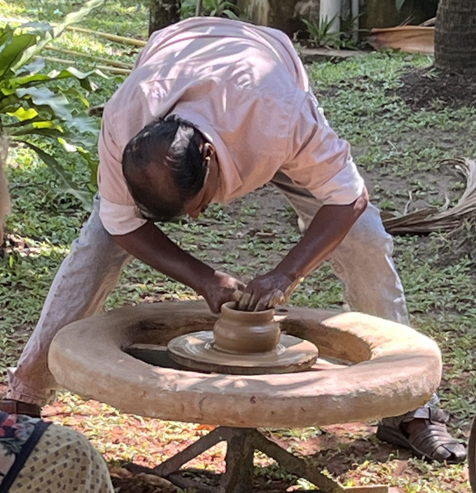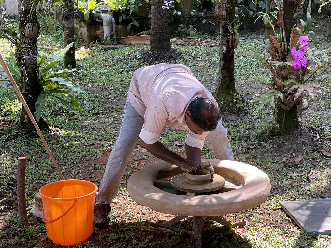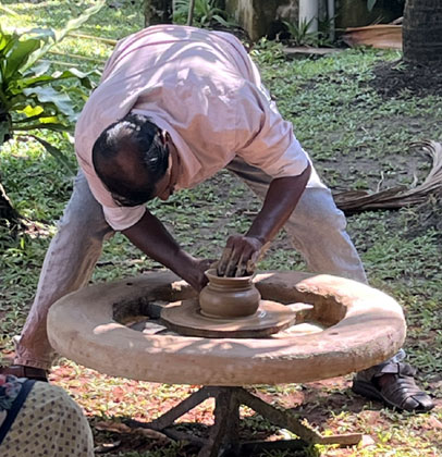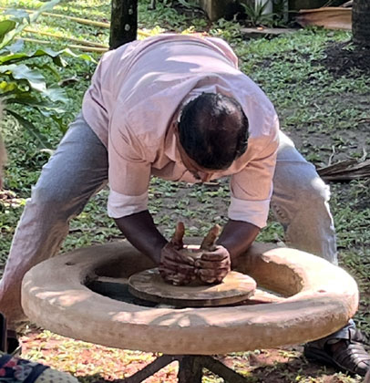 making. The potter kneaded the clay with his hands, placed
