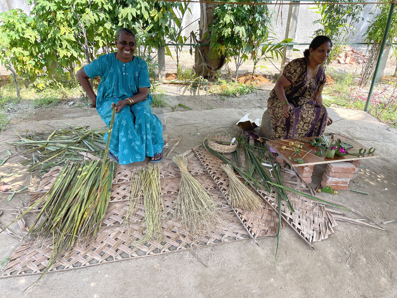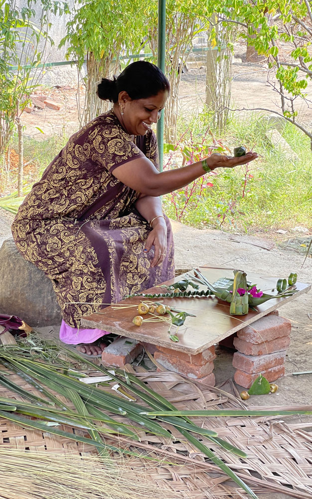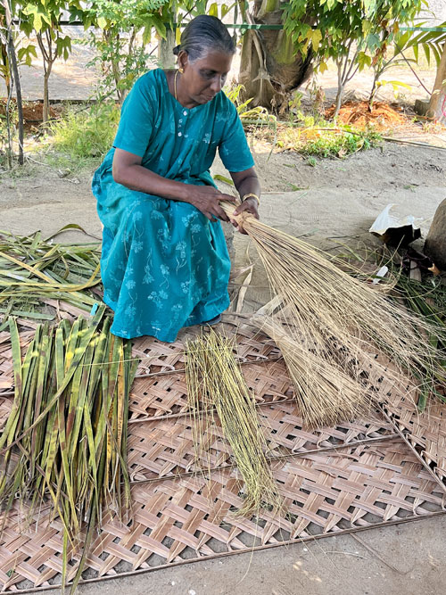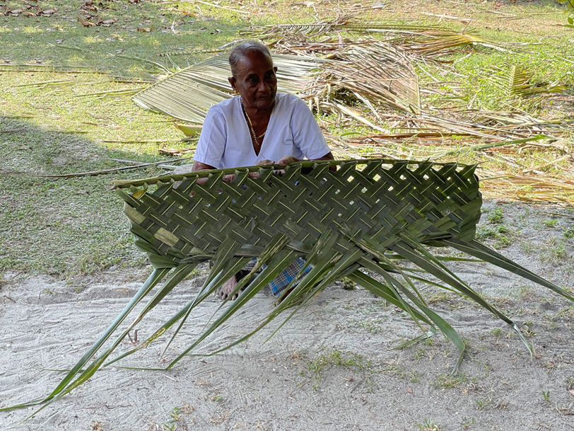 Weaving coconut leaves,