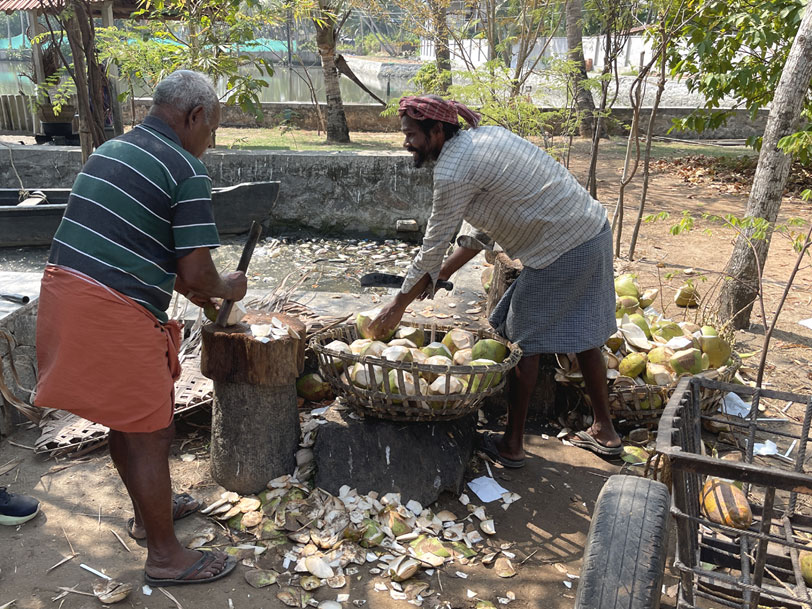 | Cocunuts were being hacked open quickly and