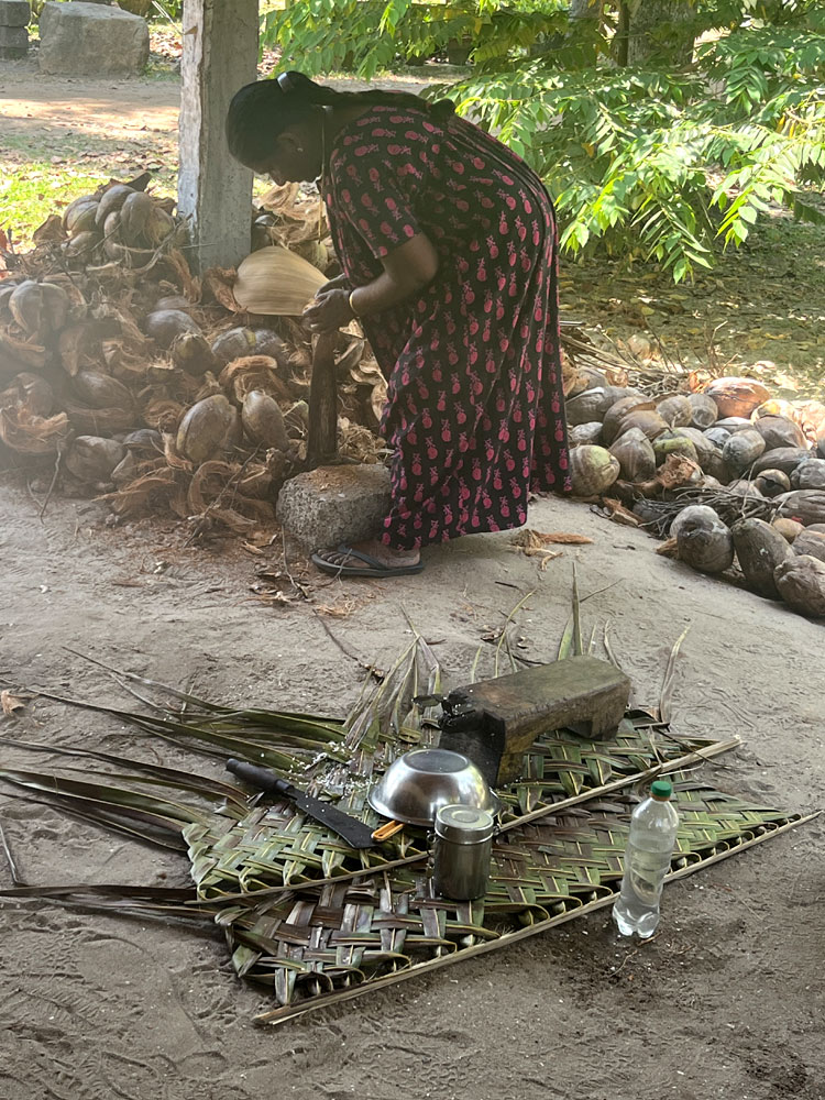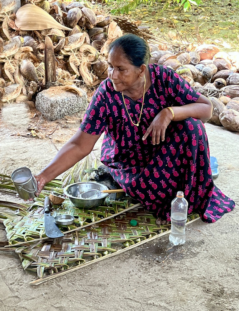 from the coconut shell is a skilled task, as this lady demonstrated. |